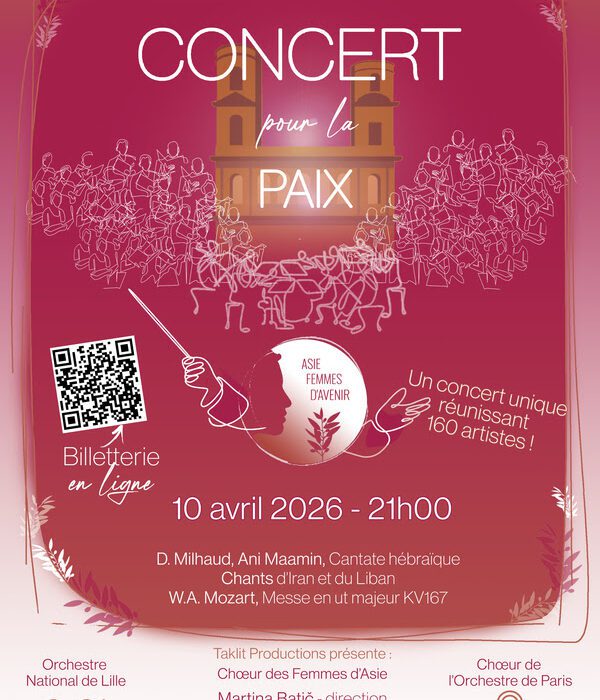Le Concert pour la Paix est l’occasion d’entendre de larges extraits de la cantate « Ani Maamin » de Darius Milhaud sur un texte d’Elie Wiesel créée en 1973, en dialogue avec des chants du monde arabe et d’orient, et la Messe en ut majeur de Mozart : un projet ambitieux au service de la paix.