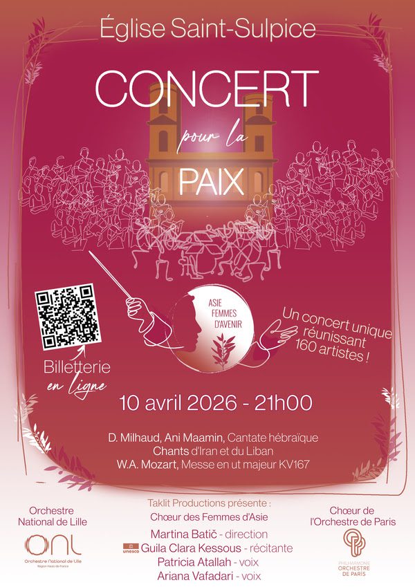 Le Concert pour la Paix vendredi 10 avril 2026 à 21h à l’Eglise Saint Sulpice à Paris constitue un événement musical unique. Le Concert pour la Paix est…